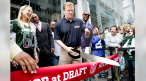 L’inauguration du magasin a été marquée par une cérémonie de coupure de ruban le 2 avril à 10h45, en présence du commissaire de la NFL, Roger Goodell, accompagné de joueurs actuels et anciens. Après la cérémonie, Goodell a même endossé le rôle d’employé de magasin pendant une heure, offrant une expérience mémorable aux premiers 500 fans présents, qui ont reçu une pièce commémorative du Draft 2012.