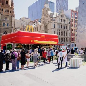En résumé, le pop-up store en forme de lunchbox géante de McDonald’s en Australie a été une opération marketing réussie, combinant design créatif, promotion de produits locaux et engagement direct avec les consommateurs, contribuant ainsi à renforcer la présence de la marque sur le marché australien.
