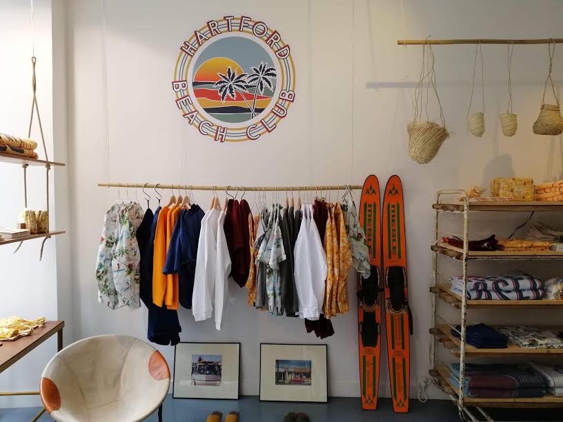Dans cette boutique éphémère, la collection « Beach Club » incarne parfaitement l’univers Hartford : maillots de bain pour hommes et, pour la première fois, pour femmes, tissus légers, imprimés solaires… Chaque pièce évoque l’été, les vagues et les plages de la côte basque, des Landes ou de la Californie. Pour marquer l’événement, deux collaborations exclusives ont vu le jour : l’une avec la marque française de maillots Anja, et l’autre avec un shaper de la côte basque pour la conception d’une planche de surf unique. Un clin d'œil à l’esprit lifestyle cher à Hartford.