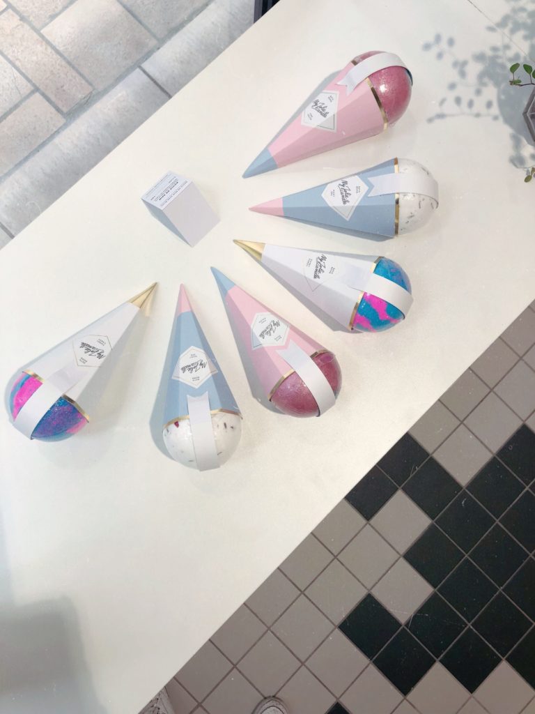 Parmi elles, les fameuses boules de bain parfumées, présentées sous forme de cornets glacés, qui rencontrent un grand succès. Une expérience sensorielle à vivre sur place ou à offrir, parfaite pour une attention pleine de douceur à l’approche des fêtes.