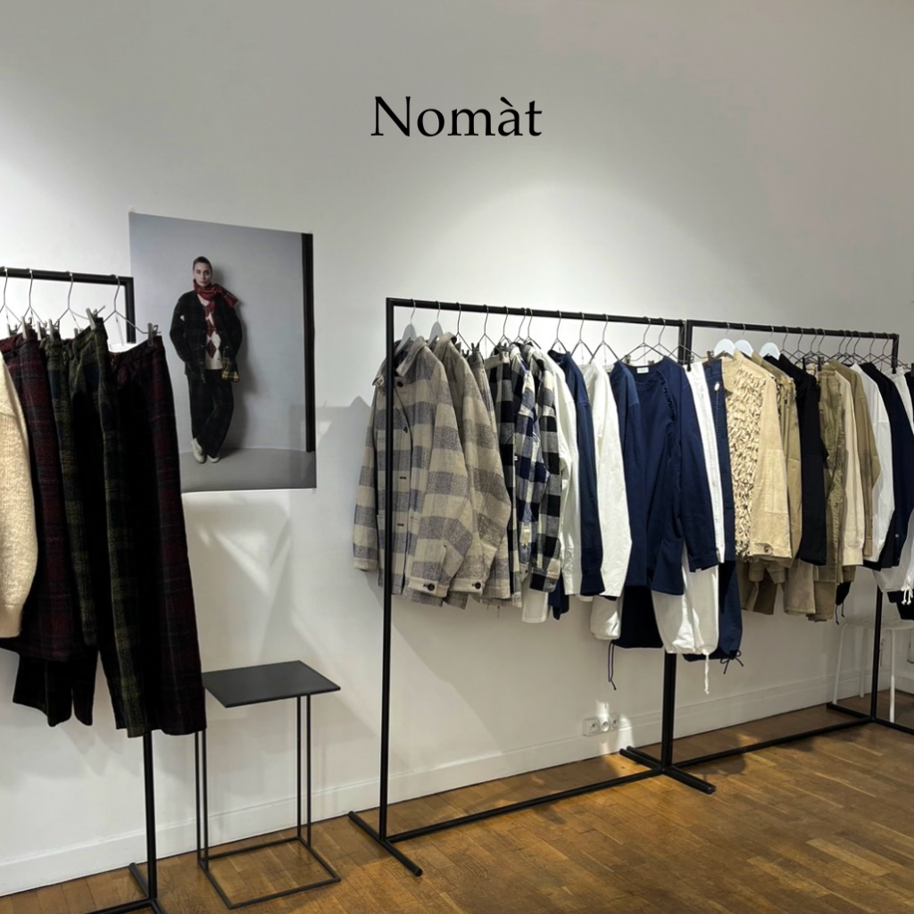 Niché dans le Marais, au sein d’une boutique exclusive de My Pop Up Store, le showroom cible efficacement une clientèle spécifique et permet à Nomàt de se démarquer lors de la Fashion Week.