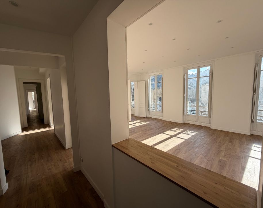 Parquet, moulures et cheminées donnent un cachet particulier à l'appartement qui est par ailleurs baigné de lumière.