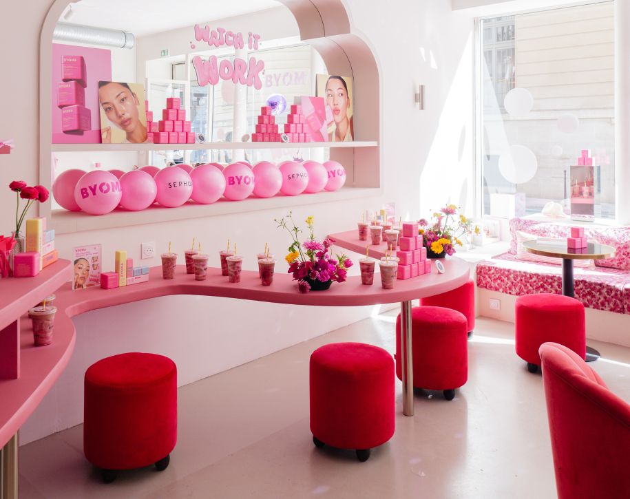 La partie pop-up, à l'entrée de l'espace, est lumineuse et facilement aménageable selon les besoins de votre marque.